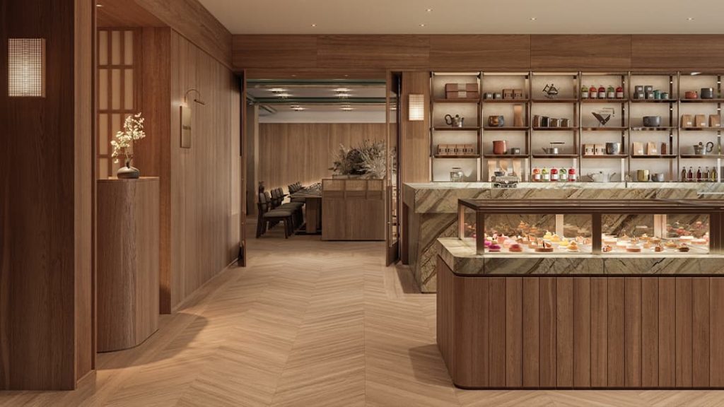 - Modern Brasserie + Pâtisserie – Set around the inner courtyard, overlooking a moss garden anchored by a preserved sakura tree.